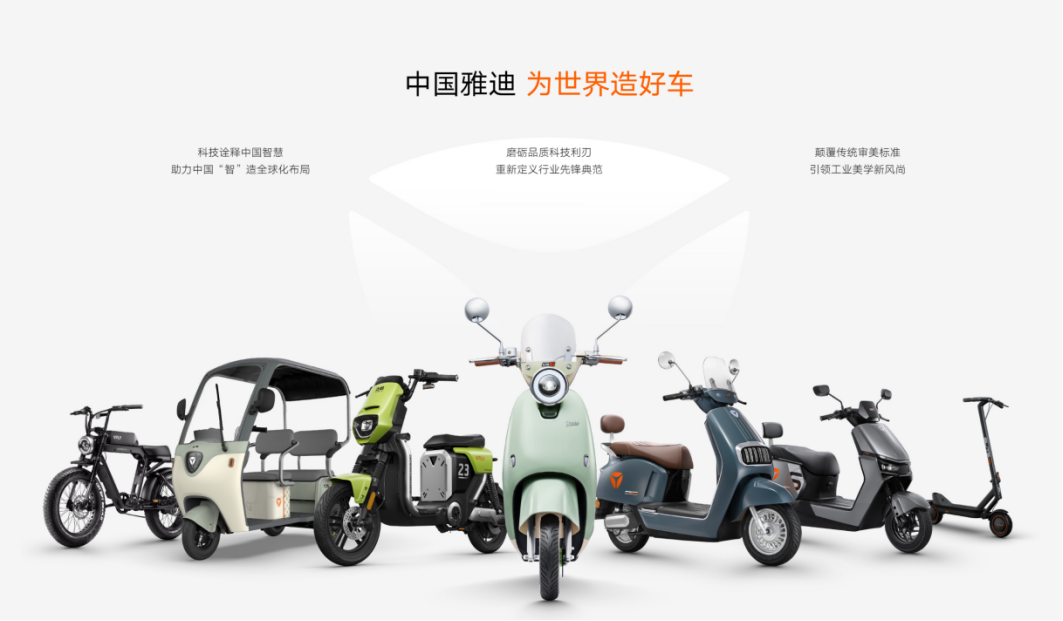 雅迪科技集团有限公司创立于2001年,是中国电动车行业首家上市企业。经过20多年的高速发展,现已成为集电动两轮车、电动三轮车、电踏车、滑板车、折叠车等多品类车型及其零配件研发、生产、销售、服务于一体的中短途出行服务商。雅迪集团总部位于江苏无锡,集团拥有全球八大产研基地,销售网络遍布全球100个国家,终端门店数量超40000家。