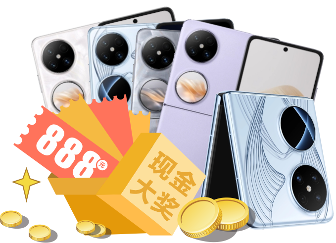 店庆狂欢 5台华为pocket2 100个888元现金疯狂抽