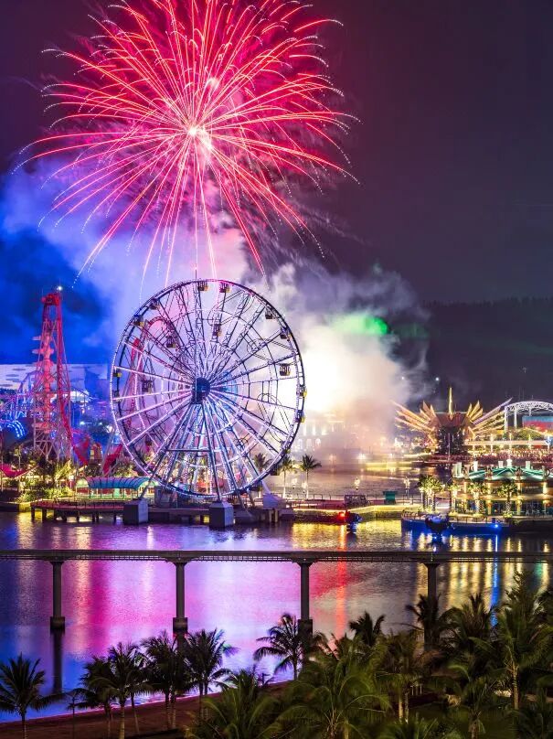 赶上周末和法定节假日,欢乐世界里还有大型夜场烟花秀表演,五彩缤纷的烟花绽放在夜空中,摩天轮之上,浪漫至极!
