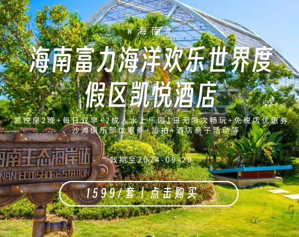 今天给大家带来的带来的是占地2000亩的海南海洋欢乐世界+官方配套海南富力海洋欢乐世界度假区凯悦酒店的套餐。