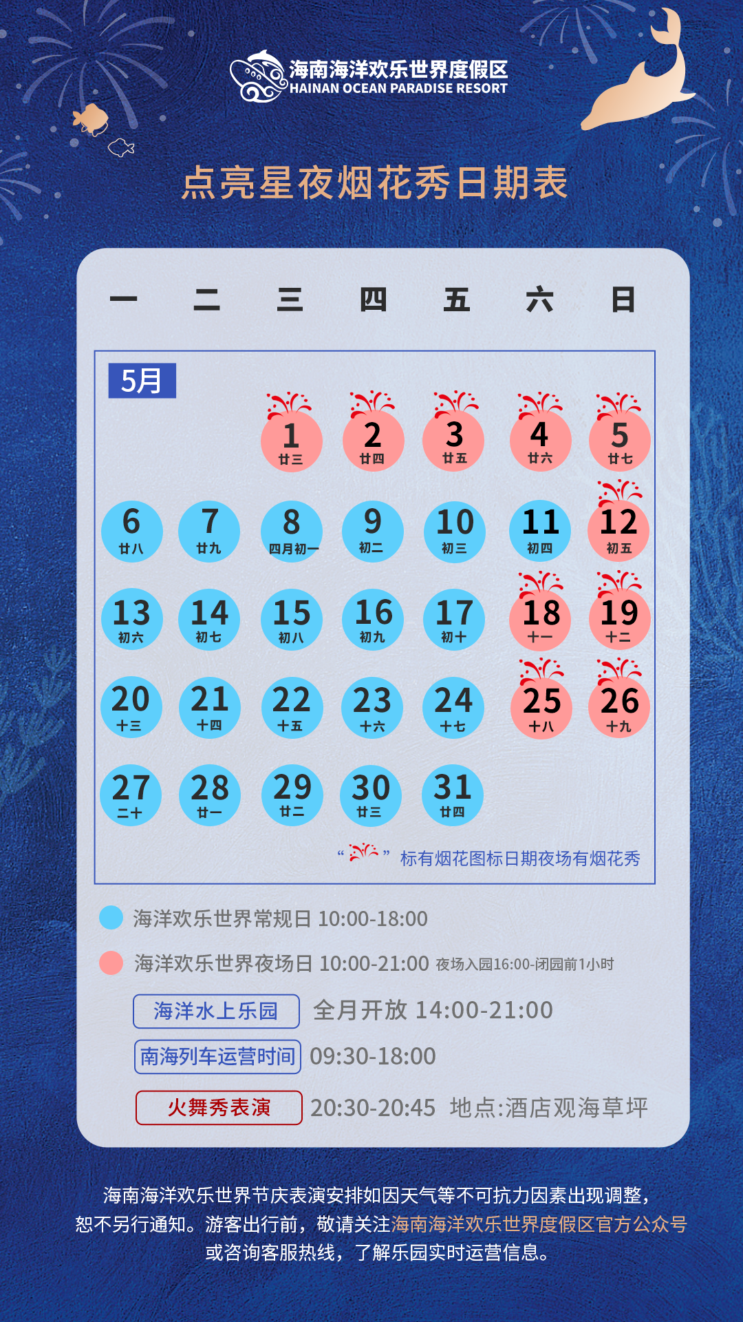 *图为5月份烟花秀时间表,实际以酒店安排为准