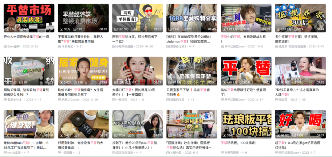 在《2023年轻人搜索关键词报告》中公开显示,“平替”是夸克平台上的年度搜索关键词之一。