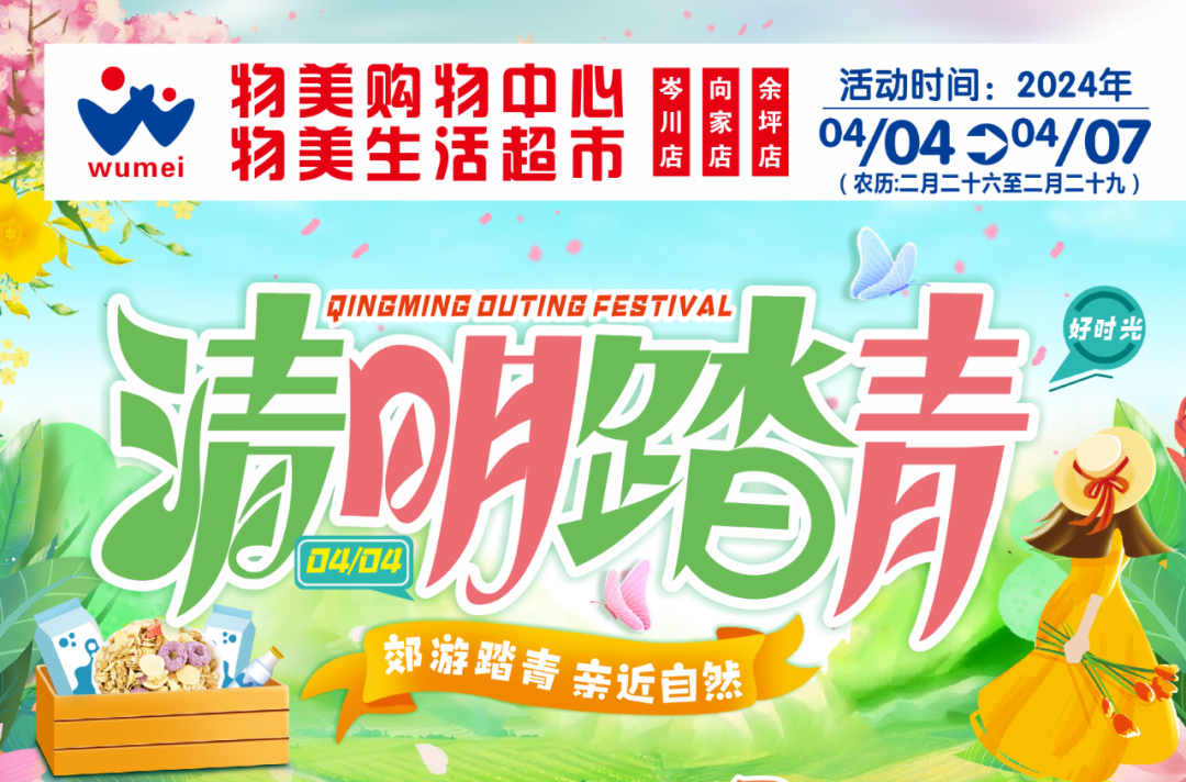 摘要:【物美购物中心向家店】清明踏青季 新鲜食材、省钱低价!4月4日-7日,优惠促销活动来袭!