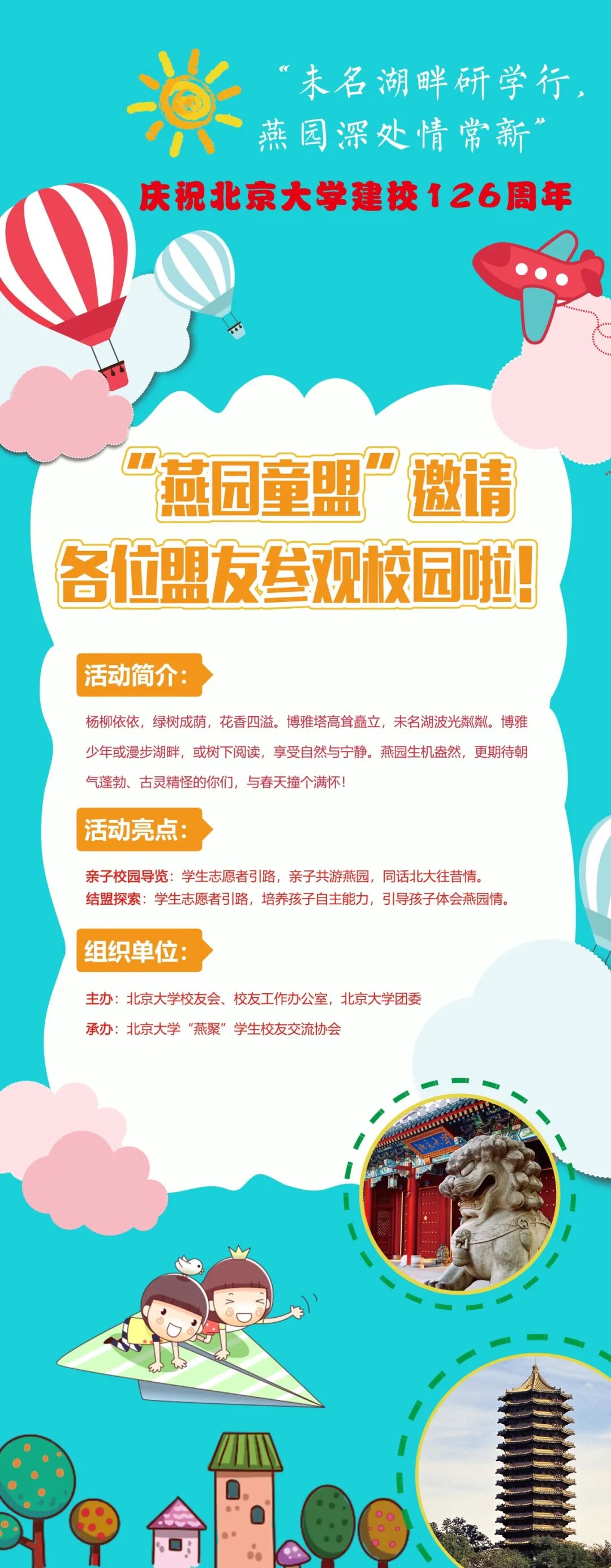 “燕缘童盟”——庆祝北京大学建校126周年“未名湖畔研学行,燕园深处情常新”导览活动是为北大校友二代成长搭建的公益研学活动。报名参加者都视为认同本户外活动免责声明书。