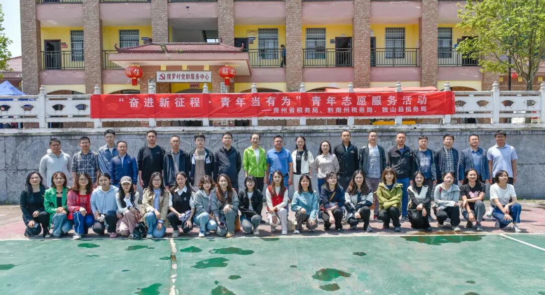 2024年4月26日,为深入学习宣传贯彻党的二十大精神,广泛践行社会主义核心价值观。在纪念“五四运动”105周年来临之际,国家税务总局贵州省税务局、国家税务总局黔南布依族苗族自治州税务局、国家税务总局独山县税务局到独山县百泉镇摆罗村,联合开展“奋进新征程·青年当有为”志愿服务活动。