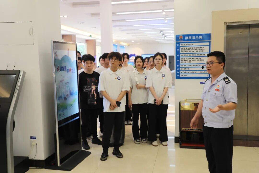 活动上,在梧州市万秀区税务局第一税务分局青年干部代表的带领下,师生们一起走进办税服务厅一次参观了粤桂税费直通车、自助办税区、综合办税区等功能区域,观摩体验了发票领用、发票代开、自助申报等“便民办税缴费”服务举措,“零距离”面对面的感受税费服务、智能化的高效与便捷。