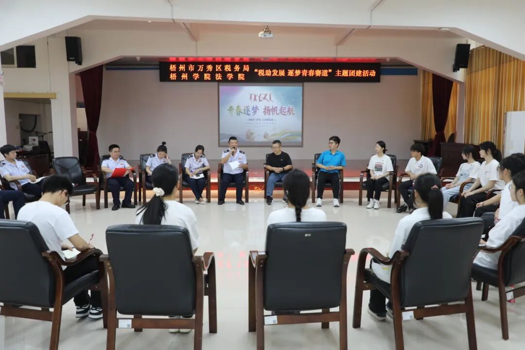 4月26日,梧州市万秀区税务局紧扣“税助发展 向新而进”主题,聚焦“高效办成一件事”宣传服务为民,联合梧州学院开展“税助发展 逐梦‘青春赛道’”主题活动。