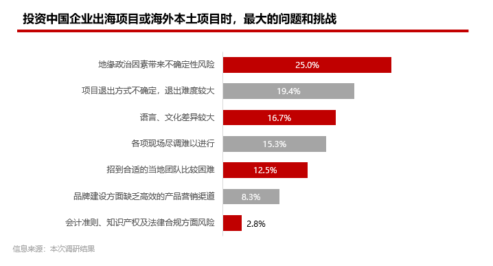 同样,以字节艰难缓慢的上市进程为例,投资人在出海项目上最终在哪个资本市场、以何种方式实现退出,也是最困扰大家的问题之一(比例接近20%);