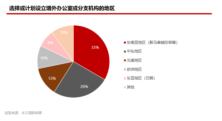 与大家关注的海外市场分布类似,东南亚和中东地区不论从地理位置、政治友好度还是市场热度来说,仍然是投资机构们一旦决定建立海外分支时的首选前两位。