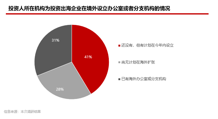 在所有参与调研的投资人中,已有接近1/3比例的投资人所在机构设立了海外办公室或分支机构;