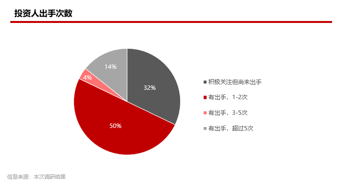 活跃的投资活动:超过半数的投资人在过去一年内完成了1-2次出海投资,有14%的投资人投资超过5次,表明部分投资人在出海领域非常活跃。
