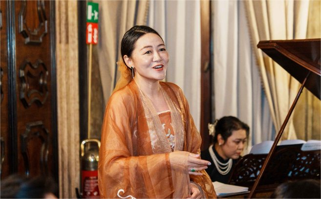 A:此次意大利之行,感受颇深。能与毕宝仪、都珊珊、北村香织、宗宏琳等四位老师,以及来自意大利的两位歌唱家同台演出,我深感荣幸。此次活动让我得以与来自世界各地的艺术家进行交流,并我深刻认识到艺术在促进国际理解与尊重中的具有重要作用。中国之夜音乐晚会的圆满成功极大地鼓舞了我,期待未来中国艺术在国际舞台上能够有更多的展示机会,持续推动文化交流与艺术创新。
