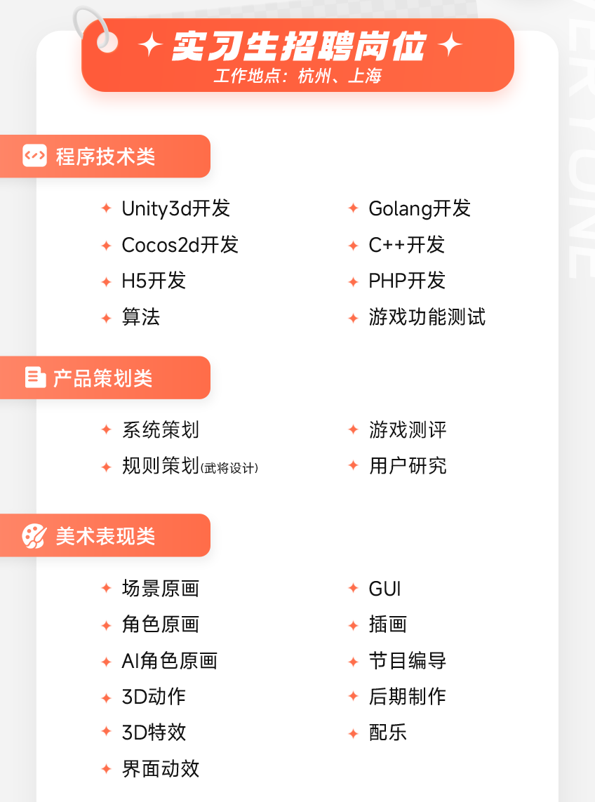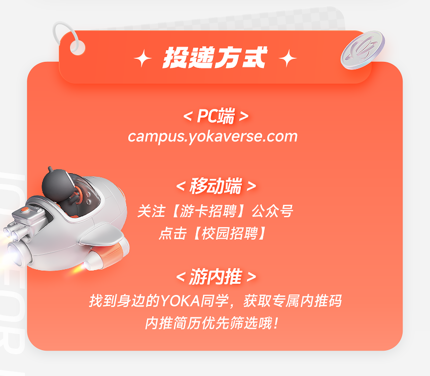 文章内容来源于公众号:游卡招聘,点此可查看原文,内容版权归相关企业所有,本网站仅供交流学习。若涉及版权问题或存在侵权情况,请及时与我们联系,我们将第一时间进行删除处理。