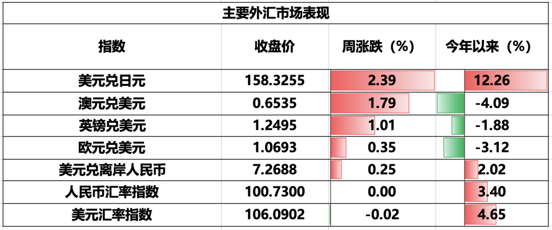 美元兑人民币周一自7.2394开盘,逐步震荡上行,并续创年内新高,周内高点7.2478,周五报收于7.2463,全周上涨0.09%,夜盘继续在7.2460水平附近波动。美元兑人民币连续第四周小幅走高,交易重心逐步小幅上移,后市有望继续保持震荡走势。