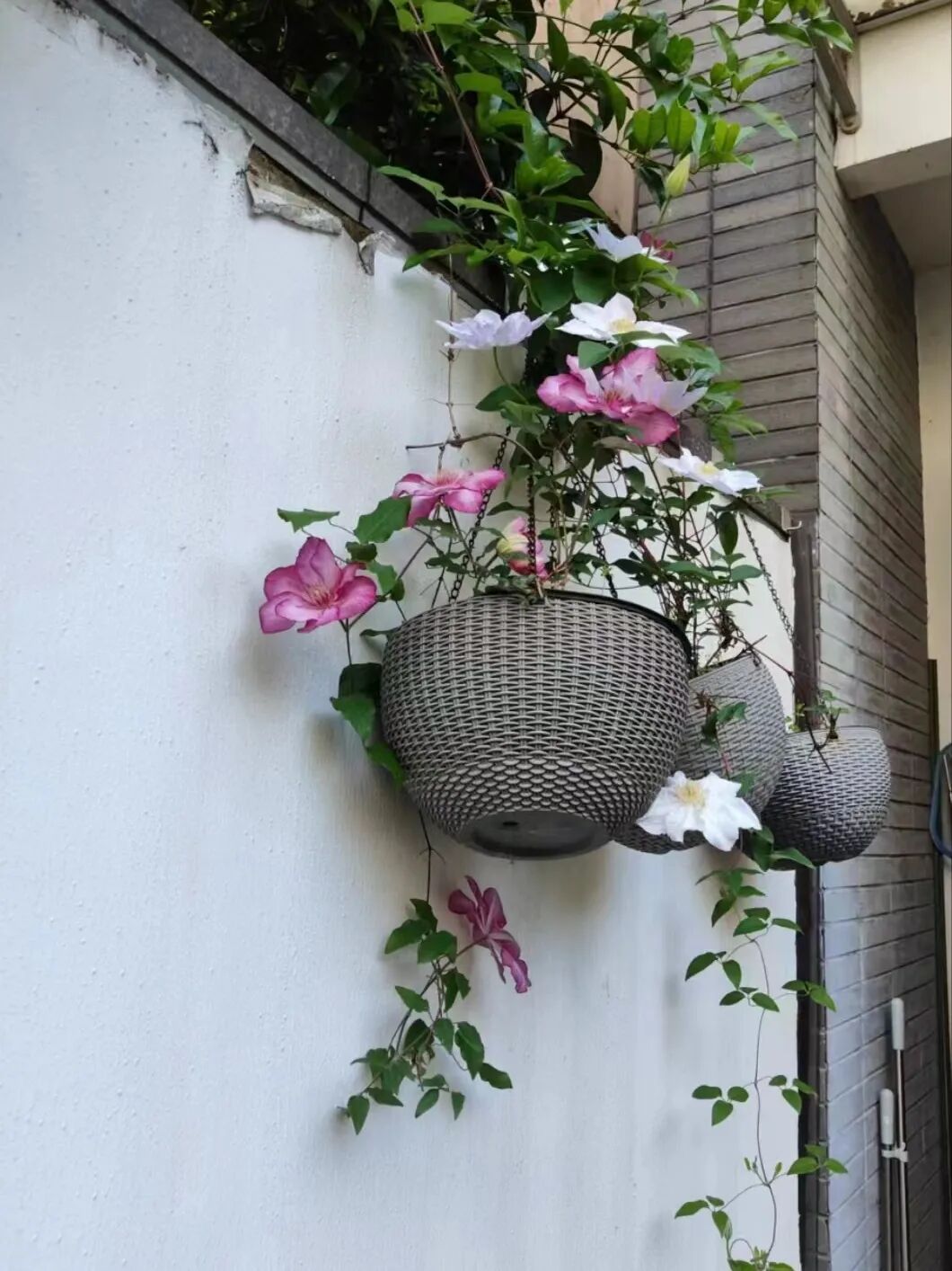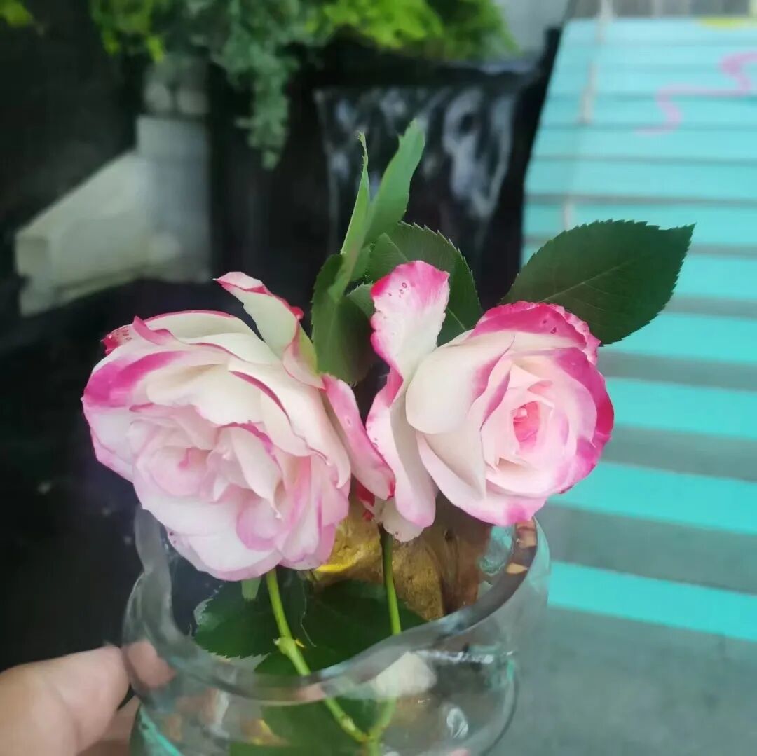 到处花开,是那种小小花,粉粉的,红红的,一簇一簇,你说是红木香,又说是十姐妹,这花型大一点的,是月季。