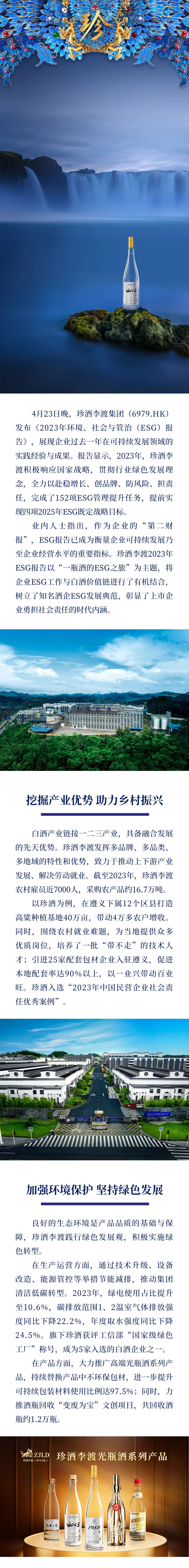 摘要:4月23日晚,珍酒李渡集团(6979.HK)发布《2023年环境、社会与管治(ESG)报告》,展现企业过去一年在可持续发展领域的实践经验与成果。