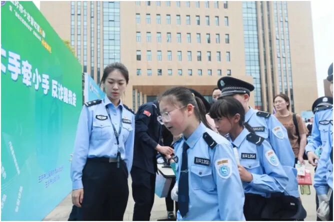 4月27日下午,台州玉环市少年警校第六期开学典礼暨“做自己的首席安全官”全城总动员活动在玉环市公安局举行。2016年开始,玉环市公安局围绕“法治社会、平安校园、和谐家庭”的目标,创办玉环县楚门少年警校,对部分在校小学生进行集中式德育、法治、心理健康教育,对少年警校建设进行了有益探索。2017年6月,玉环市公安局挂牌成立玉环市少年警校,以“爱国、责任、担当、自强、自律、自信”为青少年培养目标,以“教育一个人、带动一家人、影响一群人”为办学宗旨,以“平安成长、学会担当”为校训,采取“党政牵头、公安主抓、部门协同、家委自治”的模式,逐渐形成1个总校8个分校覆盖全域的建设规模。经过5届少年警校的办校实践,全市有1160名少年警校学员结业、1160户学员家庭加盟、50多万名群众受益,有效破解部分青少年 “家国情怀不浓、责任担当不足、守法意识不强”的思想问题和“心理脆弱、校园霸凌、违法犯罪”的社会问题,搭建了“爱国、守法、健康、担当”的向上向善青少年成长平台,成为了玉环市安全“加油站”、心防“大舞台”、警民“同心圆”,打造了县域少年警校样板,为构建新质警察公共关系和社会治理现代化助力赋能。活动现场,防诈骗主题区,“反诈声浪比拼”主题活动现场设置了“八个凡是”反诈KT板,向学员们宣讲辖区近期的真实诈骗案例和典型诈骗套路。玉环市公安局巡特警大队的队员们为大家演示装备使用与穿戴,还为小警学员讲解基础法律知识与应急自救常识,教授小警学员防护技巧。玉环市公安局交警大队的工作人员,通过生动的讲解、有趣的互动体验,让小警学员们了解日常步行、骑车、乘车过程中可能存在的安全隐患。玉环市禁毒办的禁毒社工通过禁毒知识展板、仿真毒品及吸毒工具,科普毒品的危害及相关法律法规,以禁毒小游戏的形式与小警学员们展开互动。据悉,玉环市少年警校携手市禁毒办、市司法局、市团市委、市妇联、市关工委等10家部门单位组织现场开展“平安游园”活动。通过参与各类有趣的游戏,沉浸式学习安全和法治知识,提升安全和法治意识。