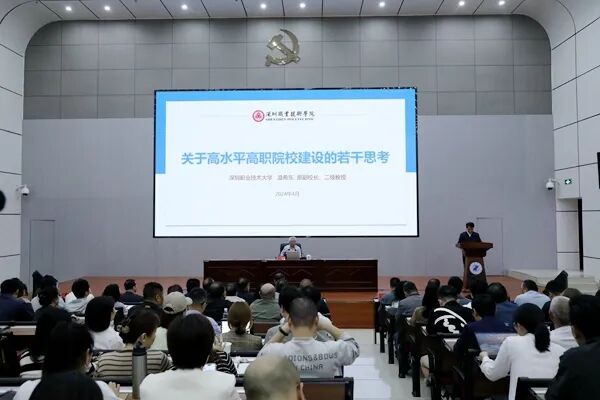 为进一步深化对高水平高职院校建设的认识,进一步加强内涵建设。4月25日下午,“德珩大讲堂”邀请原深圳职业技术大学党委委员、副校长、二级教授温希东作题为《关于高水平高职院校建设的若干思考》的专题讲座。党委书记熊颖及在家校领导班子成员,副科级及以上领导干部,全体教研室负责人,专业带头人和骨干教师、学生代表等近380人聆听了讲座,讲座由校党委副书记、校长汤泾洪主持。