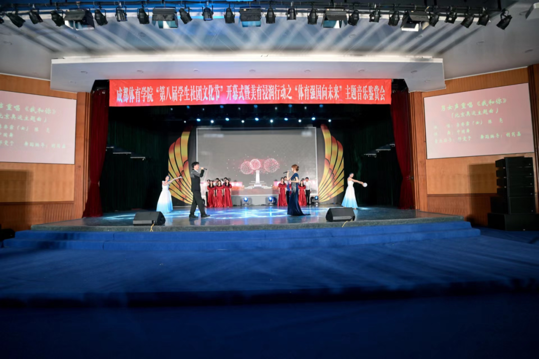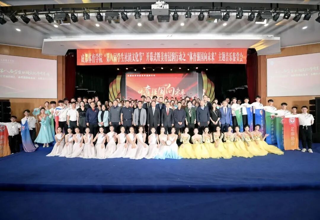 4月23日晚,成都体育学院第八届学生社团文化节开幕式暨美育浸润行动之“体育强国向未来”主题音乐鉴赏会在学术报告厅隆重举行。学校领导、相关职能部门、二级学院领导、教师代表、社团代表、学生代表千余人参加现场活动,1.3万师生、校友、家长同步观看网络直播。与此同时,30个学生社团在学校桂冠路同步开展丰富多彩的社团文化体验活动。