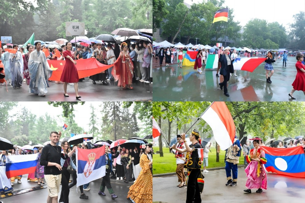 数百名中外学生代表将组成巡游队伍,身着具有民族特色的传统服装,从学校东门出发,沿着梧桐大道向田径场行进。各色旗帜迎风飘扬,民族服饰耀眼夺目,巡游队伍热情洋溢地向观众展现各国风情。这场游行如同一幅流动的世界文化瑰丽画卷,将各国文化的独特魅力巧妙地编织在一起,汇聚成多姿多彩的百花园。