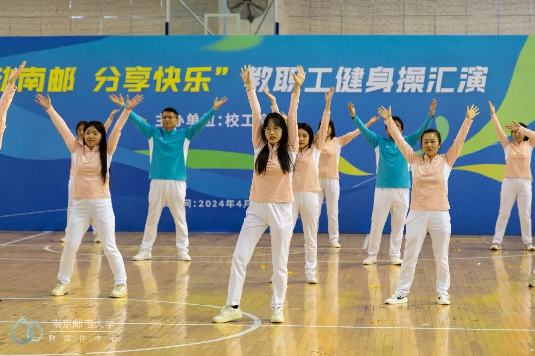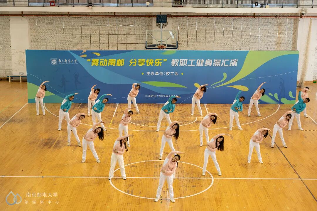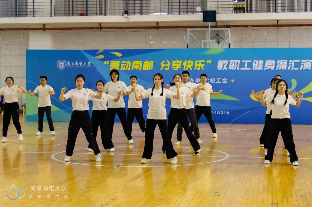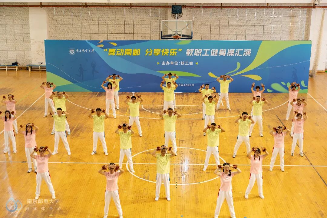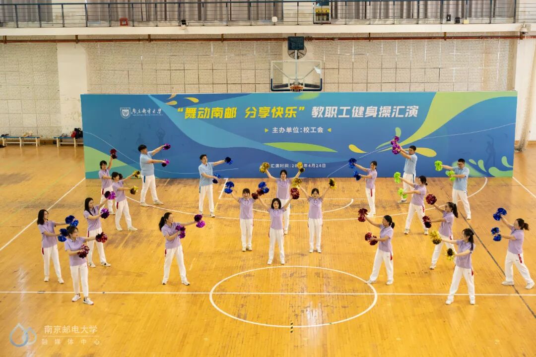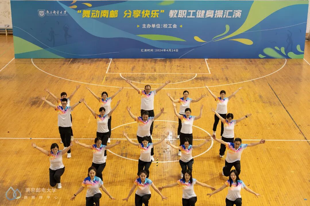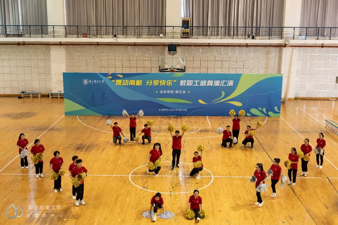 4月24日下午,“舞动南邮 分享快乐”教职工健身操汇演活动在仙林校区体育馆二楼举行,来自25个分工会的23支教职工代表队参与此次汇演。世界冠军、江苏省教科工会副主席崔文华,校党委常委、副校长周亮,江苏省教科工会高校部部长孙剑、健美操国家一级裁判员、南京师范大学体育科学学院王晓燕,健美操国家一级裁判员、排舞一级裁判员、教练员、南京理工大学体育部赵鸣明出席本次活动。