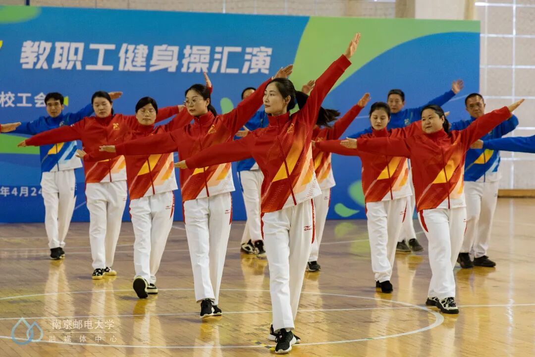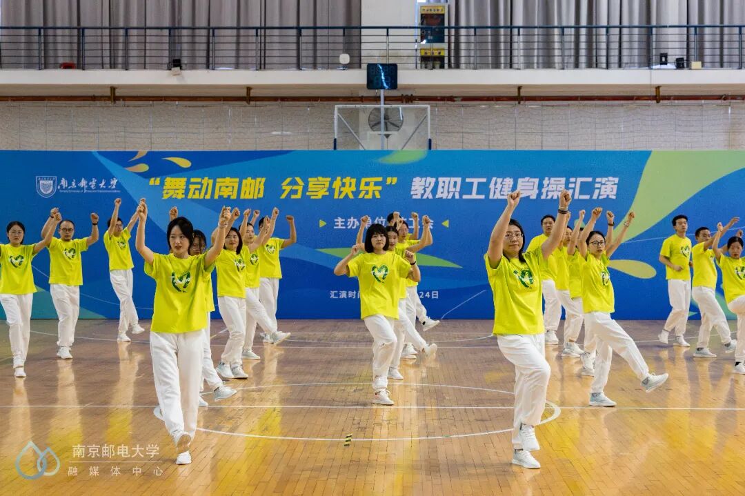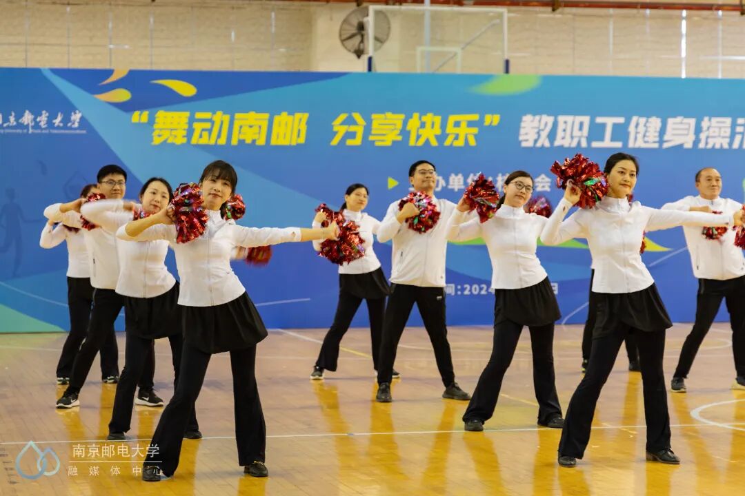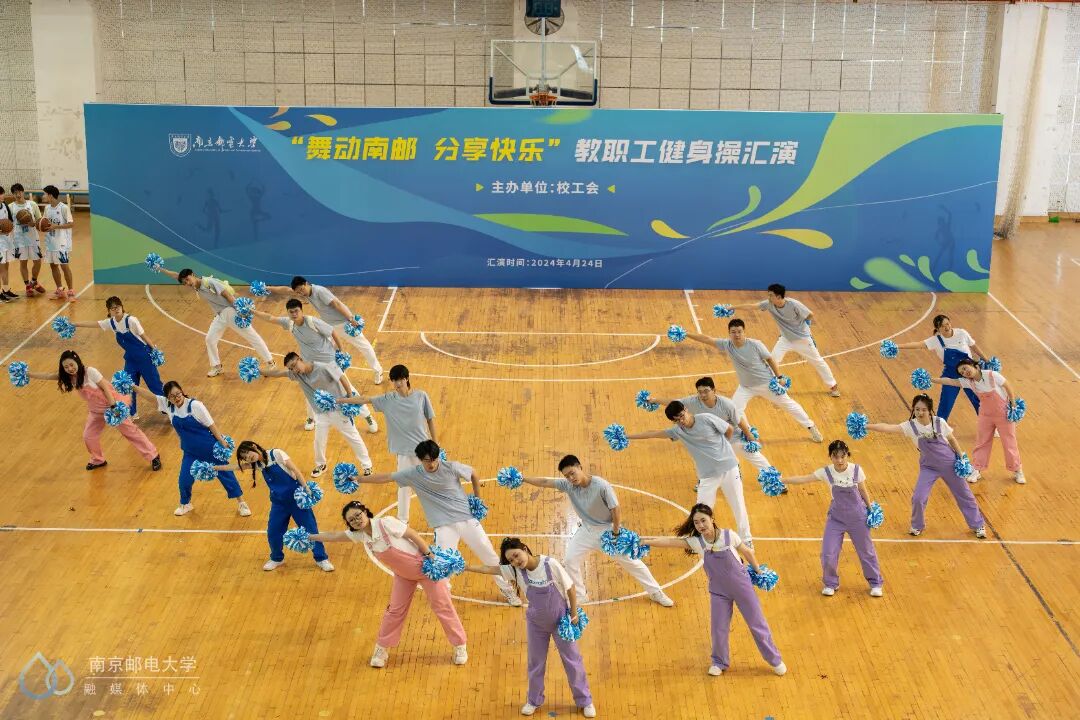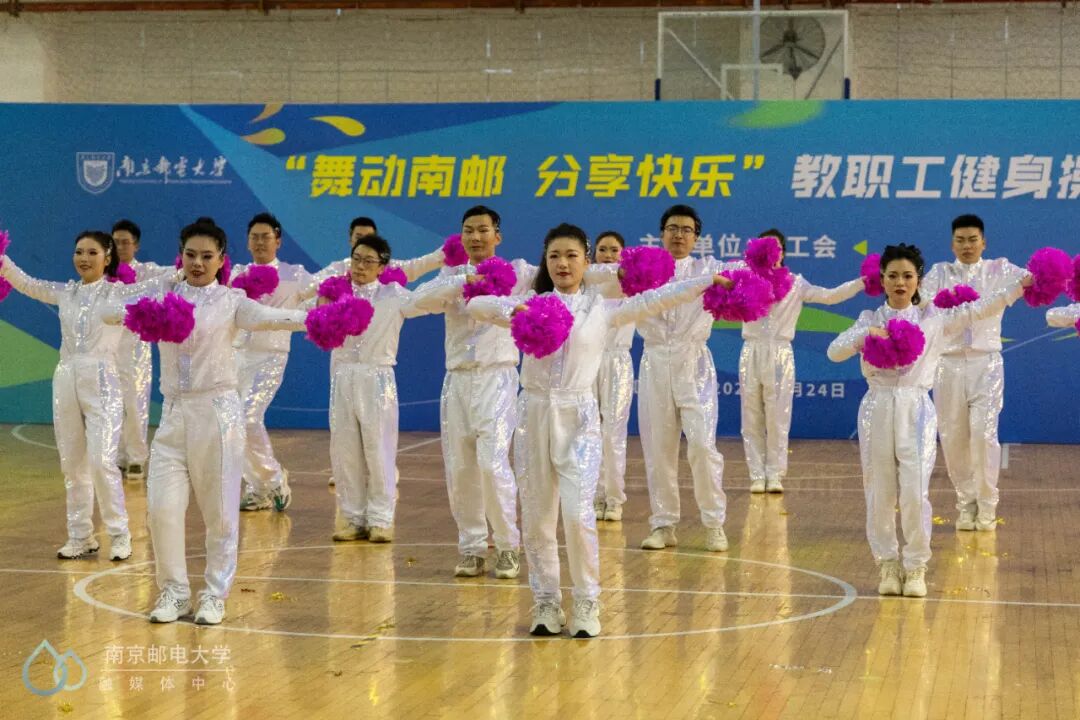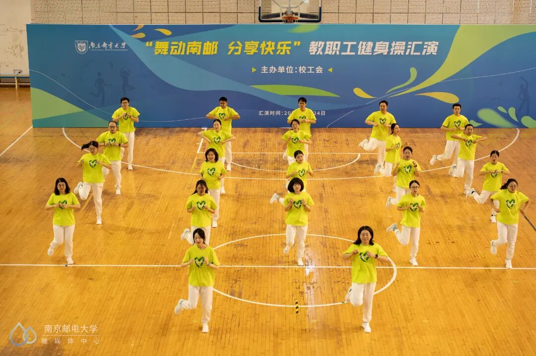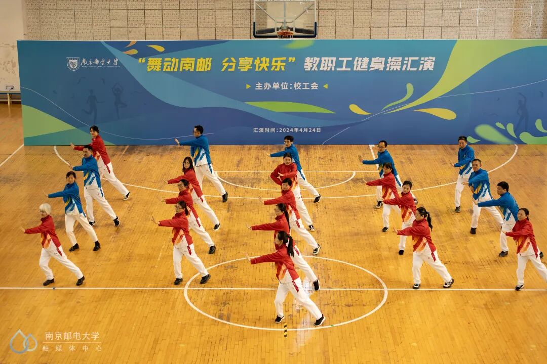 4月24日下午,“舞动南邮 分享快乐”教职工健身操汇演活动在仙林校区体育馆二楼举行,来自25个分工会的23支教职工代表队参与此次汇演。世界冠军、江苏省教科工会副主席崔文华,校党委常委、副校长周亮,江苏省教科工会高校部部长孙剑、健美操国家一级裁判员、南京师范大学体育科学学院王晓燕,健美操国家一级裁判员、排舞一级裁判员、教练员、南京理工大学体育部赵鸣明出席本次活动。