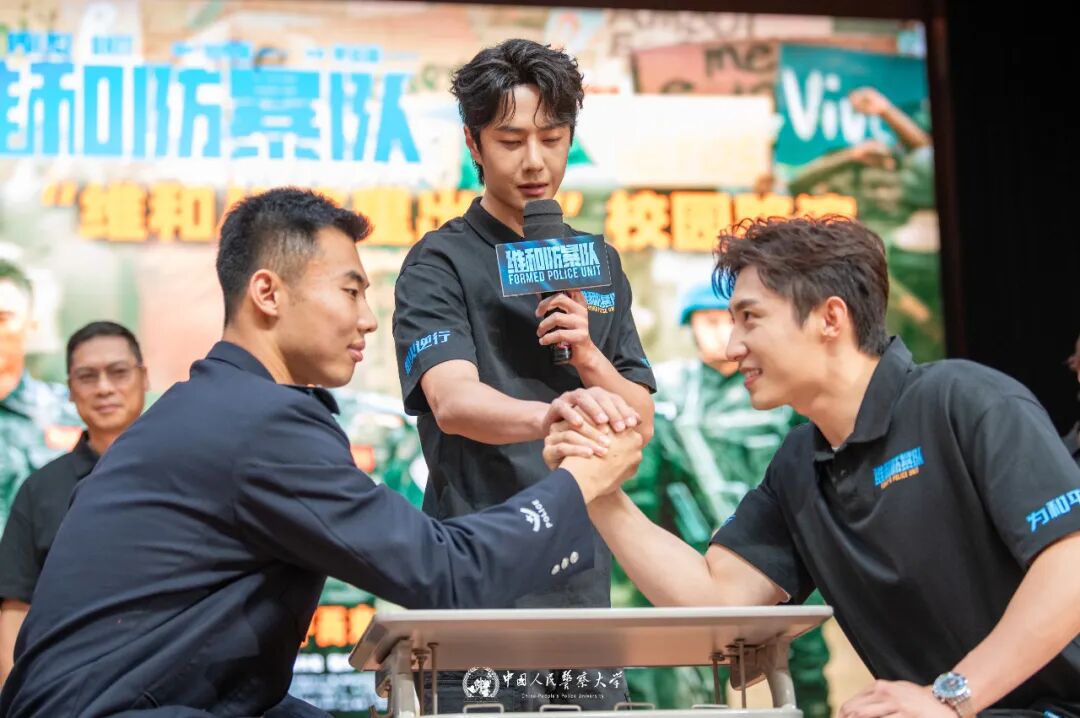 三名学生代表分享了观影感受,围绕影片创作初衷、维和精神的理解等展开提问,到场主创团队为同学们一一解答。主创团队还邀请了同学们与主演们比拼掰手腕,重现影片中的经典片段。