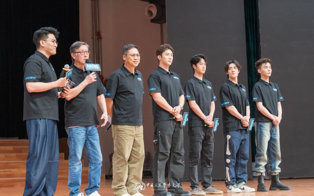 随着观影活动进入尾声,学生代表上台为主创团队赠送警大文创纪念品。主创团队与全场观众合影留念,共同定格下这一精彩时刻。