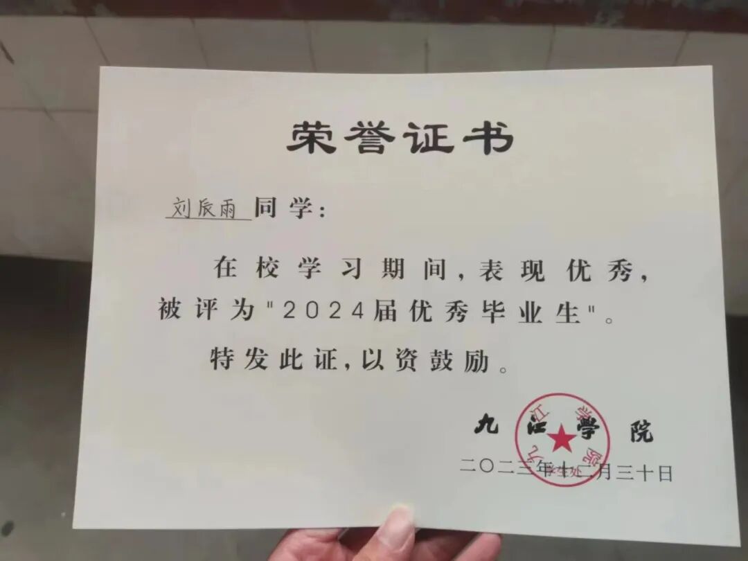 2022年毕业典礼,由于疫情原因,很多毕业生无法返校参与毕业典礼,应广大毕业生想看毕业典礼的留言心声,他接下了毕业典礼直播的任务。毕业典礼当天,下起了小雨,但他依然和团队一起扛着摄像机,穿梭在雨中现场,为大家展现了一幕幕感人瞬间。这场直播吸引了1.8万人的观看,让未能到场的毕业生们通过网络感受到了毕业典礼的氛围。不少毕业生纷纷在直播评论区留言:“谢谢主播!让我的大学不带着遗憾结束!”“泪目!也算是参加毕业典礼了!”“主播辛苦啦!”这不仅是九江学院第一次进行毕业典礼直播,同时也是刘辰雨的第一次直播,看到这么多饱含深情的评论,他感慨道:“网友们的留言让我备受鼓舞,作为一名“校园新媒体人”的成就感和满足感油然而生……”