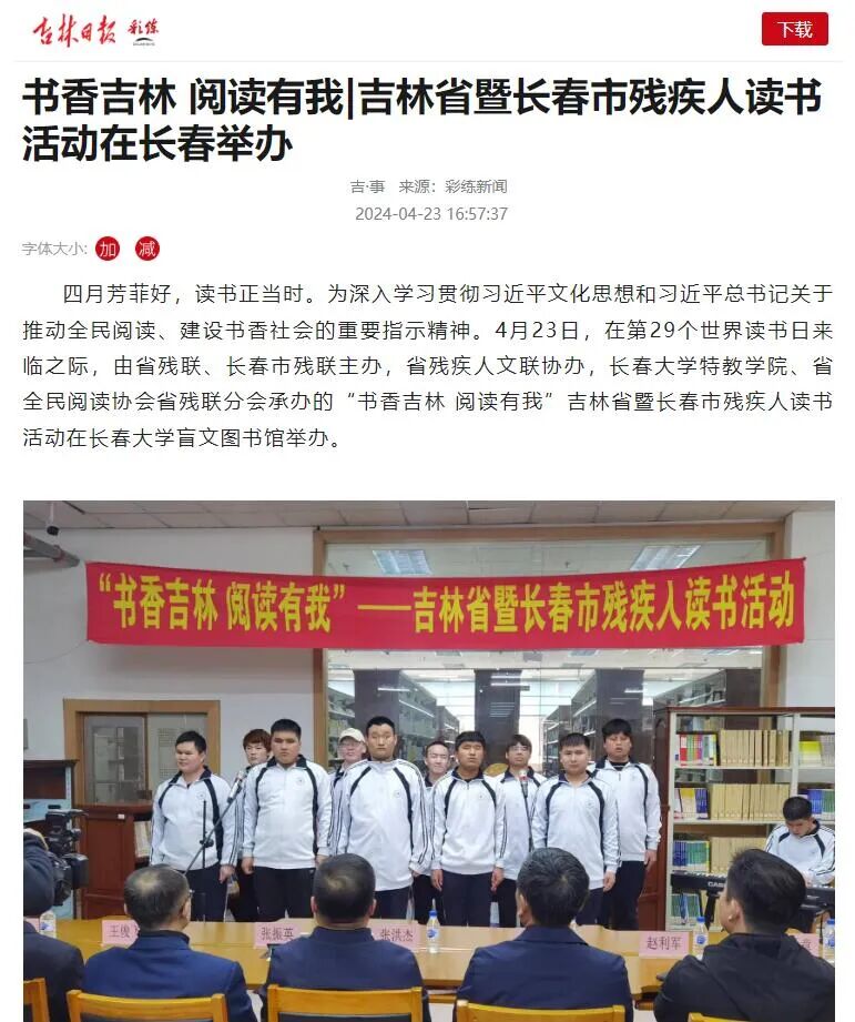 《吉林日报》报道“书香吉林 阅读有我”吉林省暨长春市残疾人读书活动在我校举办