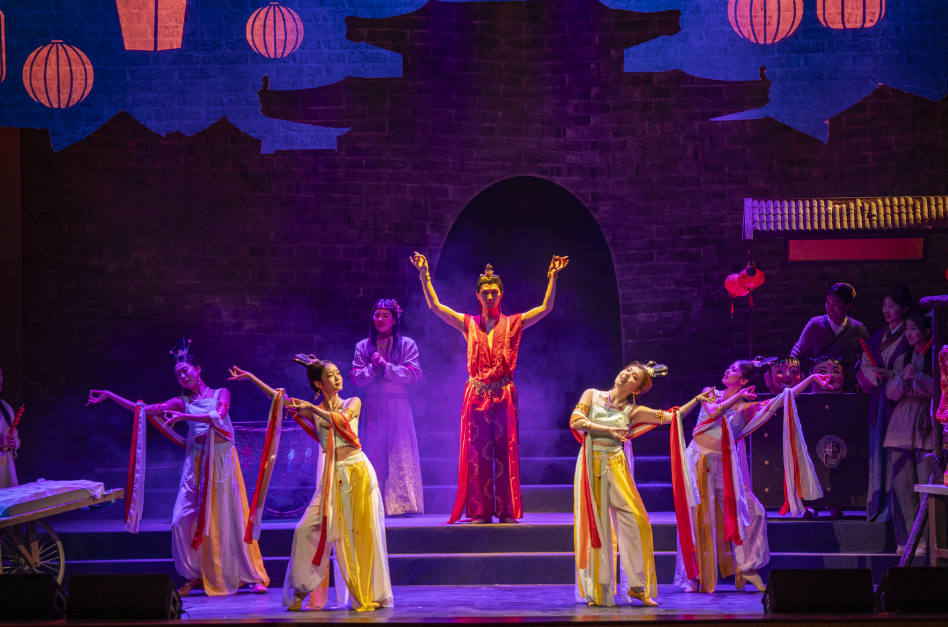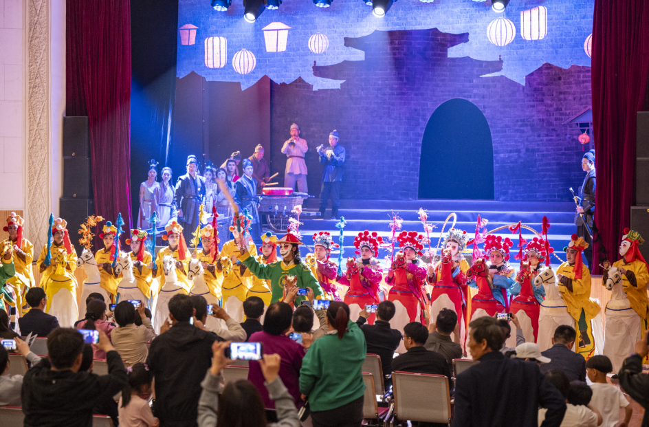 这部轻喜剧讲述了朱常洛(剧目主角)为躲避风波、改换身份躲藏到永宁后发生的一系列故事,巧妙地将永宁古城的深厚历史与竹马、高跷等非遗传承相结合,展现了一幅明代生活的生动画卷。在当晚的演出中,原汁原味的“南关竹马”和“永宁高跷”赢得了观众的热烈掌声和一致好评。
