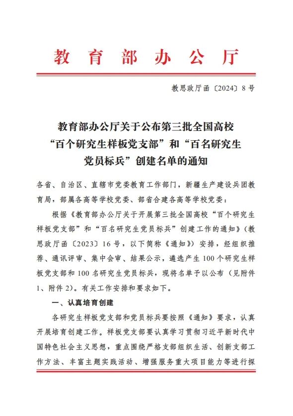 近日,教育部公布了第四批新时代高校党建示范创建和质量创优工作(简称“双创”)培育创建单位、第三批全国高校“百个研究生样板党支部”和“百名研究生党员标兵”(简称“双百”)创建名单。北京联合大学5项入选,数量居全国前列!