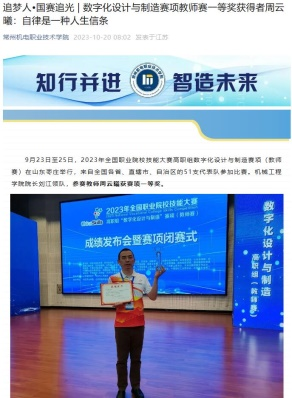 常州机电职业技术学院机械工程学院第二党支部聚焦立德树人根本任务,坚持“抓党建就是抓发展,抓好党建就是最大事业”的理念,对标第四批新时代高校党建“双创”工作重点任务 “七个有力”,通过实施“12345”支部工作法,党建业务双融双促,进一步提升支部战斗堡垒作用、充分发挥党员先锋模范作用,以高质量党建引领事业高质量发展。近3年来,支部在学生培养、产教融合、劳动教育、课程思政等工作方面成效显著,被中国青年报、中国教育报、新华日报等媒体报道86次,2024年支部被列为“第四批全国党建工作样板支部”培育创建单位。