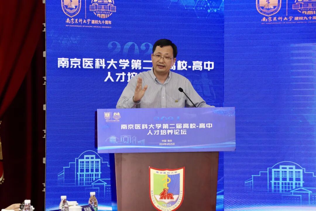 校长胡志斌对莅临论坛的教育厅领导、中学校领导、特邀专家表示欢迎和感谢。他表示,在90年的办学历程中,南京医科大学始终以服务人民群众身心健康为己任,以高质量的医学教育、医学科研和医疗卫生服务,积极推进健康中国、健康江苏建设。希望通过本次高校—高中人才培养论坛,聚焦合力打造开放共享的心理健康教育教学资源平台,携手探索大中小学心理健康一体化建设的新路径,为培养思想道德素质、科学文化素质和身心健康素质协调发展的时代新人,贡献高校与高中协同育人的力量。