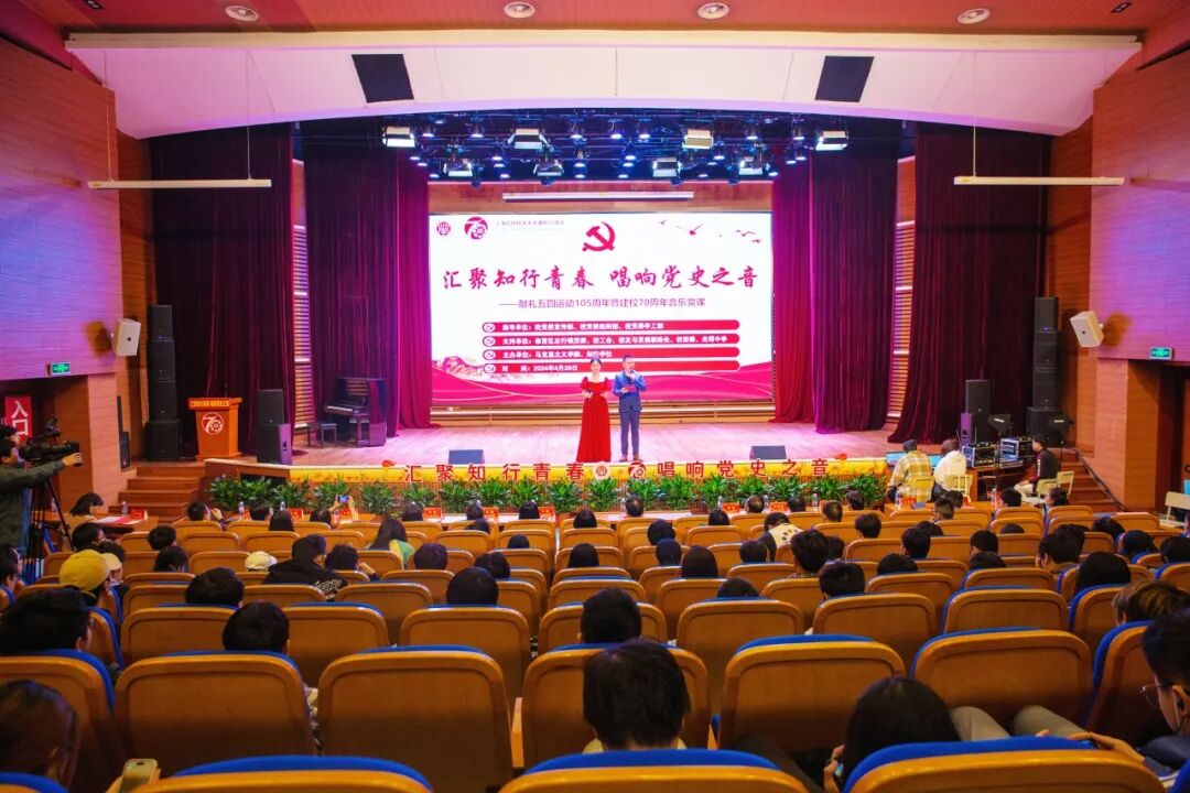 为纪念五四运动105周年暨上海应用技术大学建校70周年,丰富创新学校“大思政”育人模式,巩固和拓展党史学习教育成果,4月26日下午,上海应用技术大学在奉贤校区举办“汇聚知行青春,唱响党史之音”音乐党课。