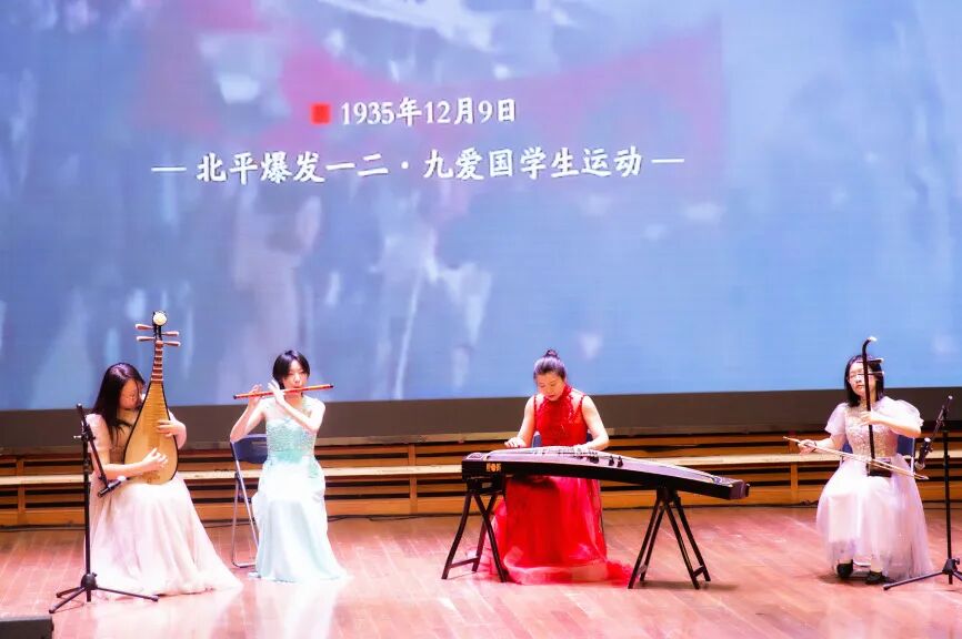 校党委学工部(处)丁元演唱的《红梅赞》,展现出巾帼英雄的坚韧与美丽。经管学院翟艾吟团队联奏的器乐《我和我的祖国》《春天的故事》《南泥湾》等,表达了人民对伟大祖国的热爱和歌颂。知行学社成员张宸杰、南泽沛、张飞扬、黄奕宁,以一首配乐诗朗诵 《谁是最可爱的人》歌颂了爱国主义精神。
