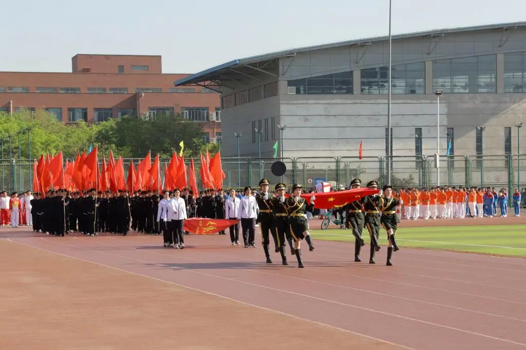 在雄壮嘹亮的乐曲声中,20个单位的学生和教师方队身着统一服装,迈着矫健的步伐,喊着响亮的口号,踏着统一的节奏,依次通过主席台,接受检阅,展现出奋勇争先、勇夺桂冠的精神风貌,赢得了在场师生的阵阵喝彩。