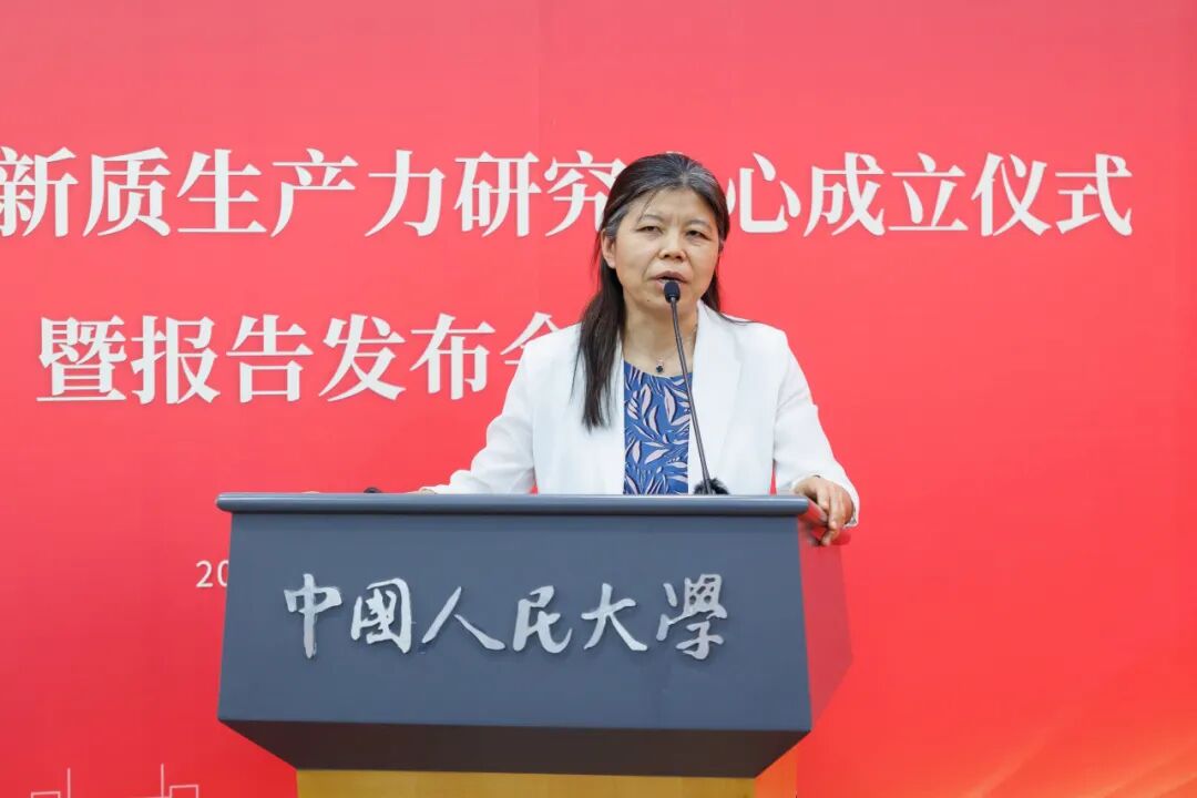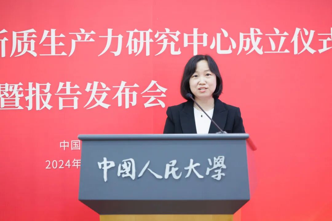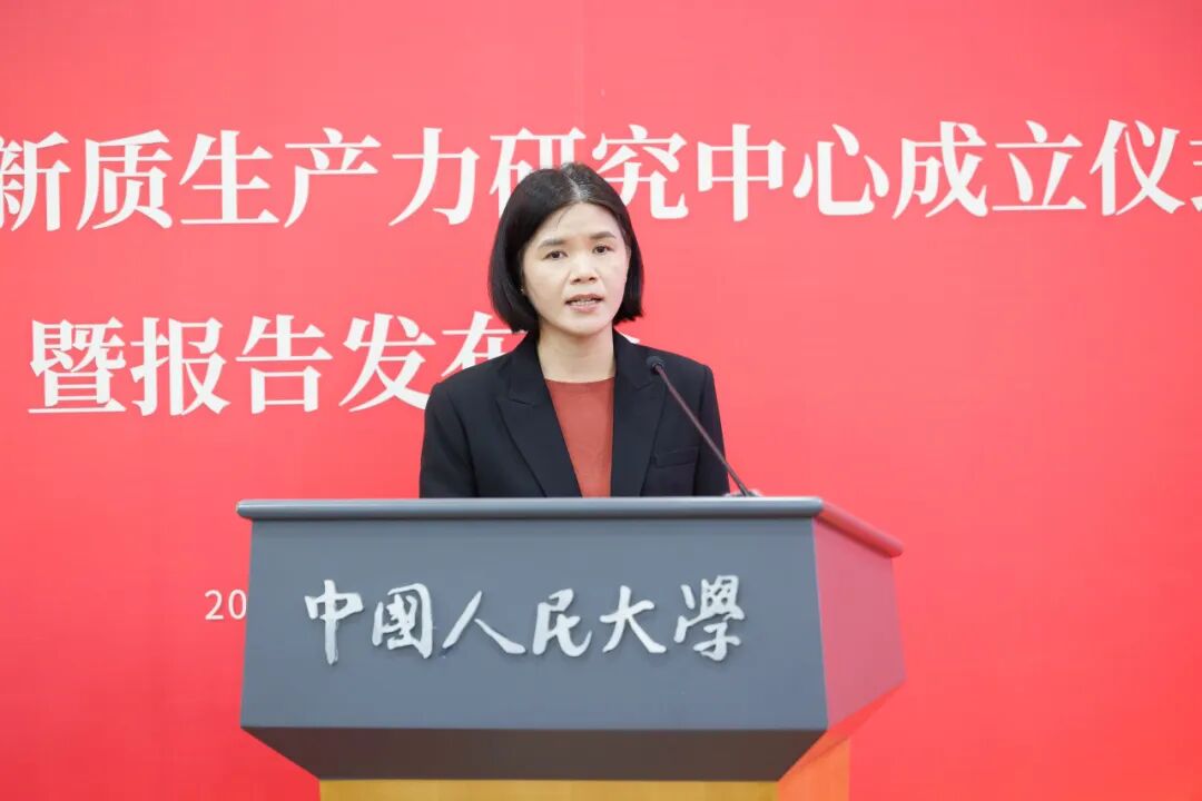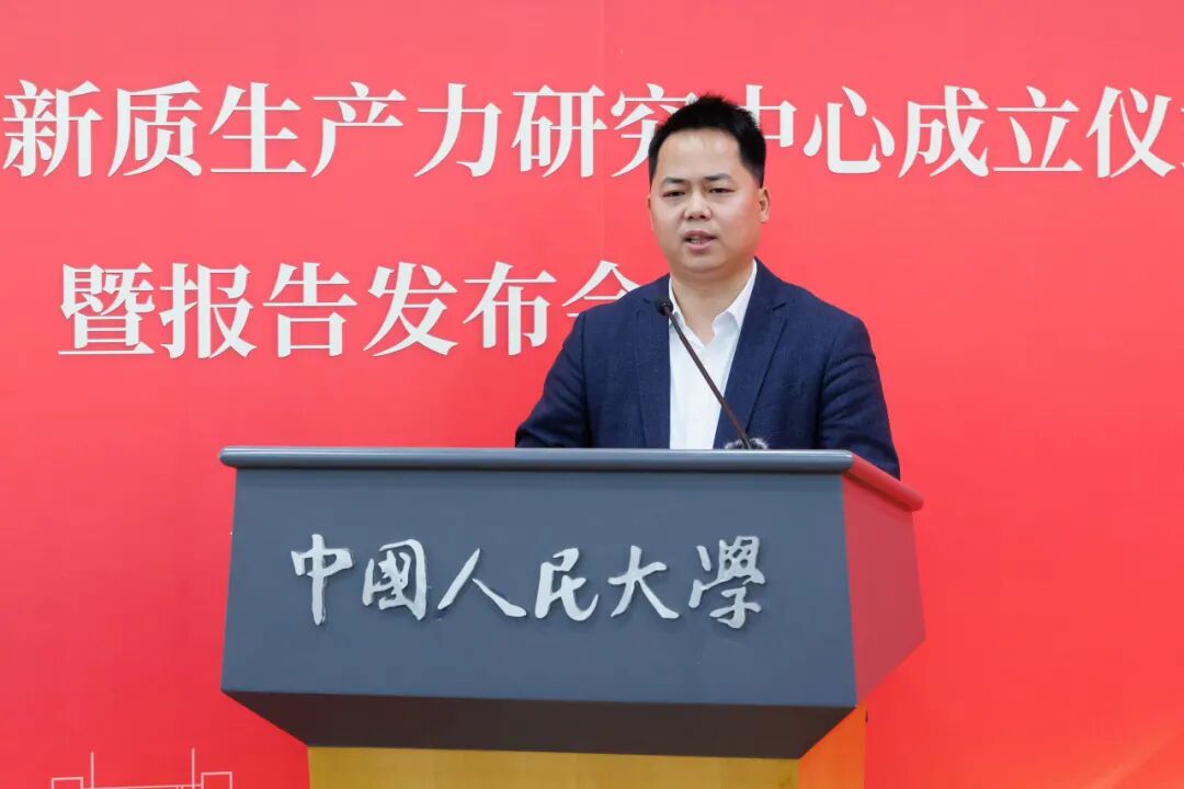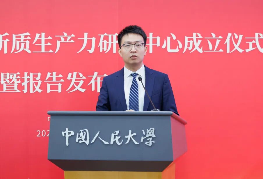 报告发布会环节,中国人民大学应用经济学院黄滢、张红霞、吕一飞三位教师围绕“新质生产力模式与特征”依次汇报最新研究成果。发布会由中国人民大学应用经济学院副院长魏楚主持。