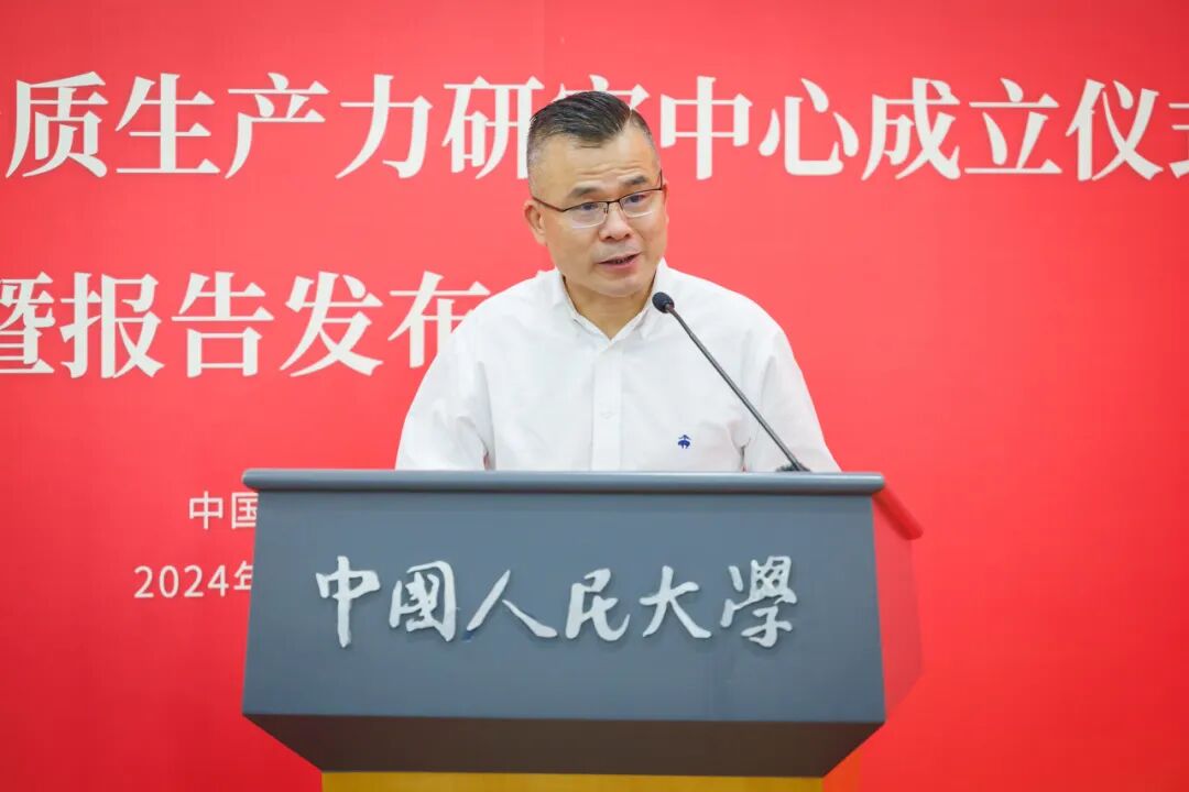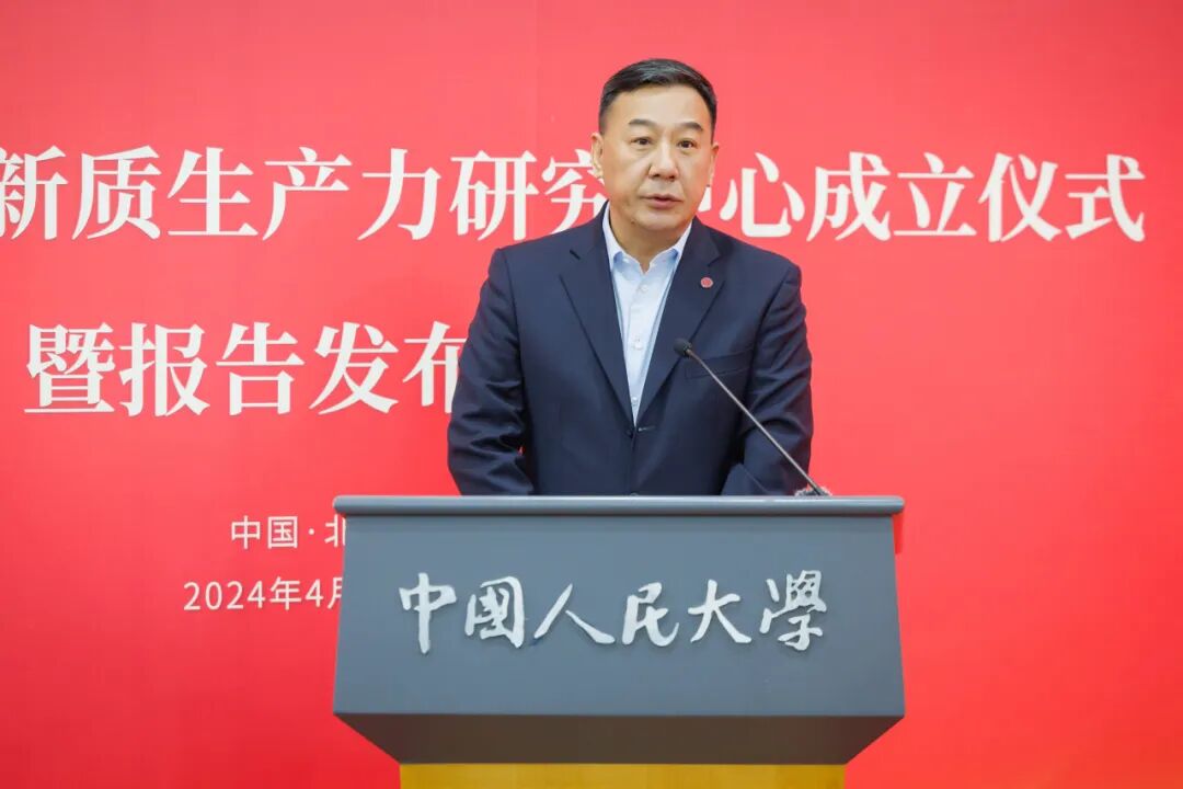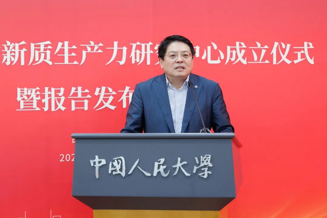 张东刚指出,中国人民大学新质生产力研究中心的成立,既是深入学习贯彻习近平总书记关于发展新质生产力的重要论述的战略举措,也是持续深入贯彻习近平总书记在学校考察调研时重要讲话精神,准确把握“强国建设、高等教育何为、人大何为”这一关键问题的具体实践。希望研究中心充分发挥学校在我国人文社会科学领域“独树一帜”的办学优势,夯实发展新质生产力的理论基础,为发展新质生产力提供强大学理支撑;聚焦科技创新,以国家重大战略需求为导向,整合优势资源,为我国实现高水平科技自立自强贡献更多智慧力量;强固人才支撑,着力完善全链条人才引育机制,培养更多与中国式现代化建设相适应的拔尖创新人才,为发展新质生产力筑牢人才基础。