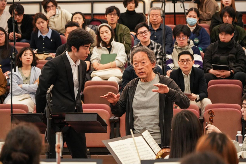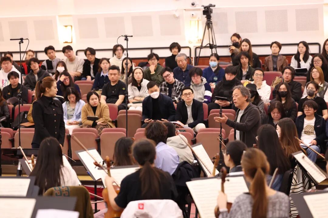 林天皓:郑明勋大师毫不吝啬地将他的音乐观、艺术观甚至是人生观分享给了我们。在他与乐队交流的过程中,他从不片面地从纯理性出发,而是让所有人暂时忘却谱面的拘束,从心底感受音乐的流动。令我印象深刻的是,当他在台上做示范时,整个乐队的声音彻底不一样了,变得厚重而深沉,每一次音乐振动的频率都能带动我呼吸的起伏,他在心里好像什么都做了,而外在又好像什么都没做——正如他告诉我的:“难的不是什么都做了而是什么都不做。”作为一名学生,我希望能够离他给我们展示的世界近一点、再近一点。