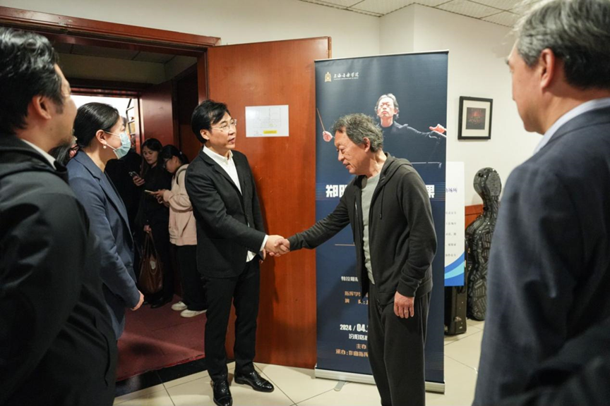 大师课后,院长廖昌永、副院长冯磊前来问候致意,对郑明勋先生的倾力指导表示感谢和敬意,同时对参加大师课的同学们也表示关心,期待年轻一代的指挥、独唱及乐队合奏人才们成长为优秀的专业音乐人才。