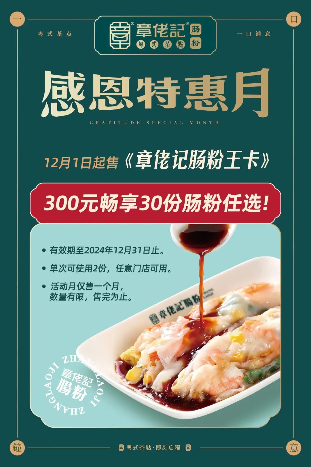 【4F 章佬记】感恩特惠月《章佬记肠粉王卡》
