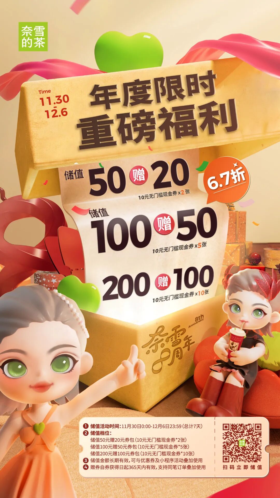 🌟奈雪茶香升级,年度重磅福利67折喝奈雪~