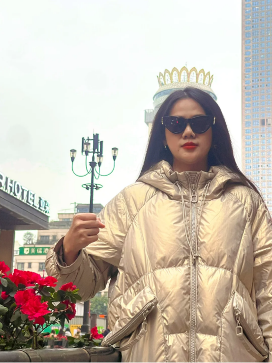 举个例子,@人至贱则无敌 在重庆偶遇一处黄冠型楼顶,她觉得很好看,就突发奇想拍了一张女王打卡照。