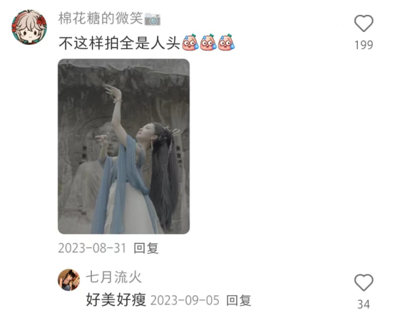 @朱古力 这组低成本景区打卡照在小红书上竟然收获了2.8万个赞,超过5千人收藏了这篇笔记,其评论区里围观的小红薯们更是呼朋引伴,而且大家似乎还有点跃跃欲试。