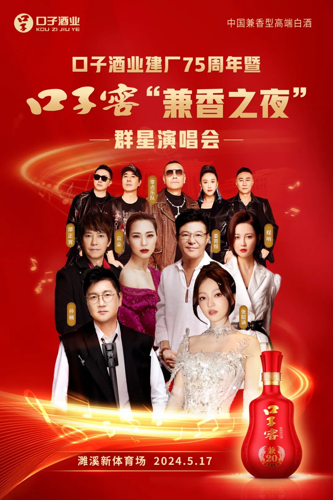 官宣!口子酒业建厂75周年暨口子窖“兼香之夜”群星演唱会来了