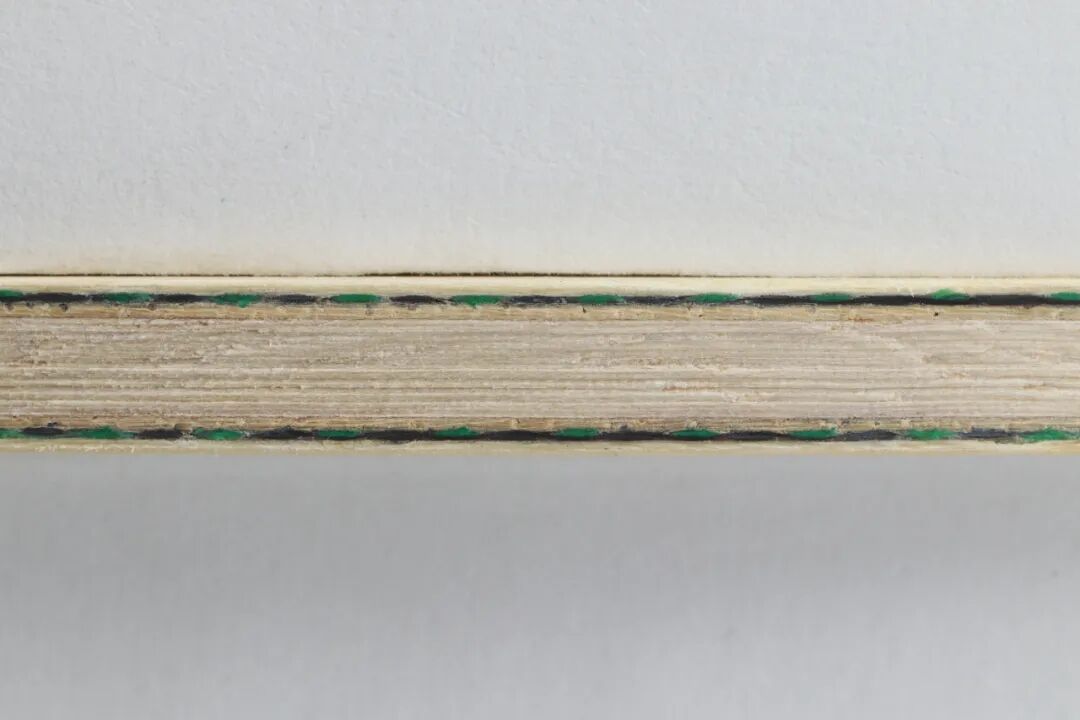 艾利克斯KC所采用的纤维,官方将其称为“氪金碳素”,实际属于芳碳纤维的一种,肉眼观察为冷色系芳碳(绿芳碳),手感偏脆且有不错的支撑力。艾利克斯KC为经典外置5+2结构,寇头面材稍厚,甚至赶超第三层的阿尤斯垫层。较厚的面材造就了很好的安定感,在台内小球方面很靠谱。