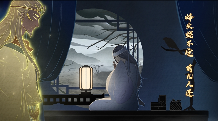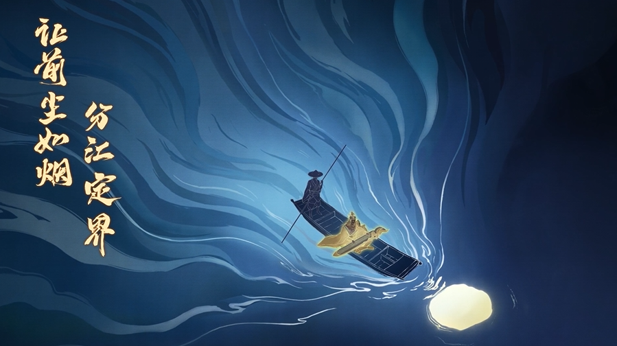 他在膝头架起长琴,倏尔,琴声从指尖流淌而出。船下,鱼群在游动,远处,风起潮落。世间的一切在此刻汇聚成朦胧的画卷:群山,孤月,江水;枯树,断壁,残垣。凄冷的风吹过鲁肃的面容,他抬起头,似乎从朦胧的月色之中,看到那些逝去的灵魂。