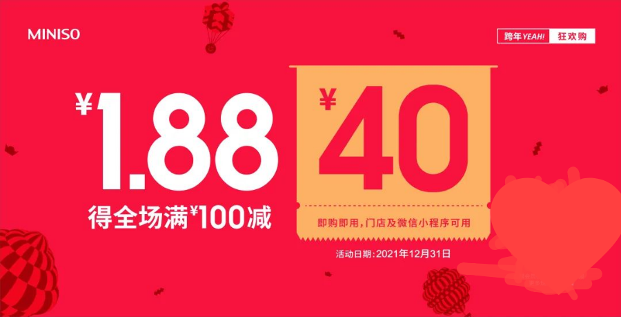 (100减40元优惠券,名创优品全国门店、名创优品小程序各一张;