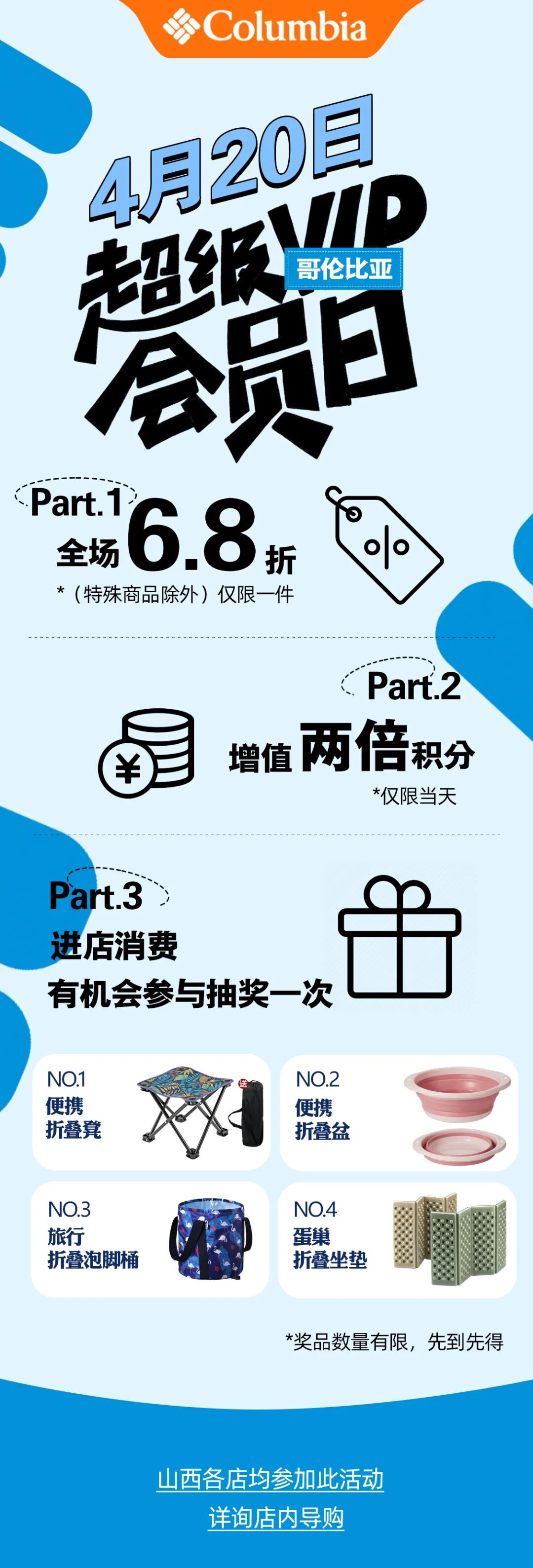 【运城东星时代广场】哥伦比亚 4月20日【超级会员日】三大好礼等你进店享!